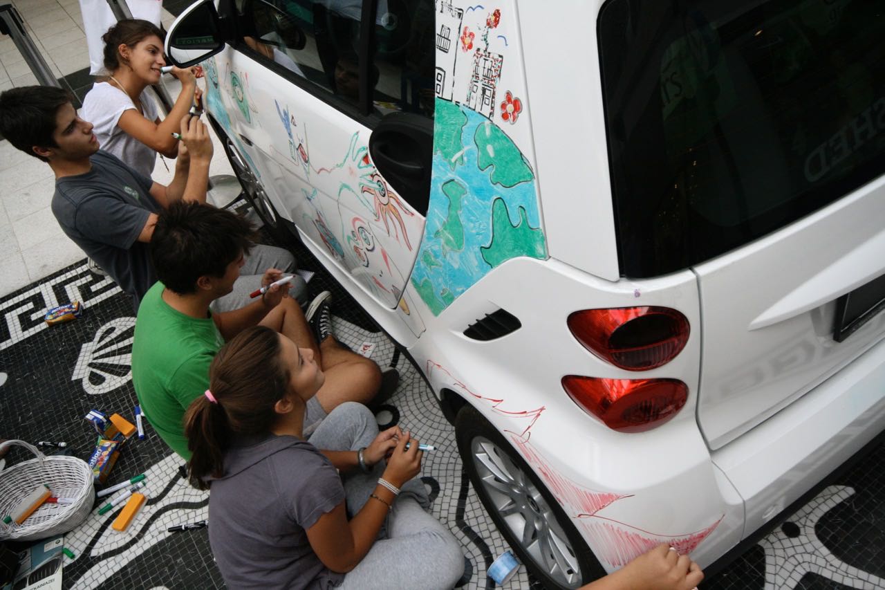 The cars' bodies were filled with positive messages, artistic shapes and vivid colors -some drawings even looked like a protest, calling for smarter and cleaner cities!